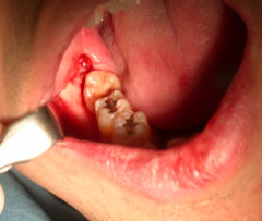 | (2)炎症が歯肉にある場合は抗生剤投与や局所洗浄により消炎後に抜歯となります。 |