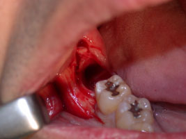 )歯茎を切開し埋まっている歯を明示します。